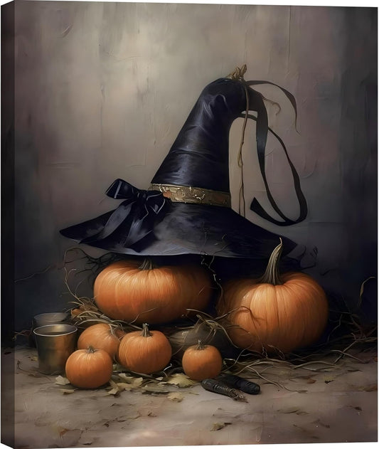 Halloween Witch Hat Canvas Art 8x12 - Vintage Pumpkin Wall Decor