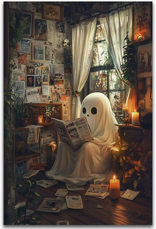 Ghost with Flowers Halloween Wall Art 12x16 Canvas Print