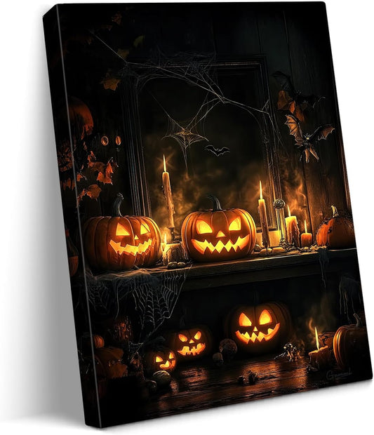 Halloween Canvas Art - Haunted House & Pumpkins Decor for Home & Party