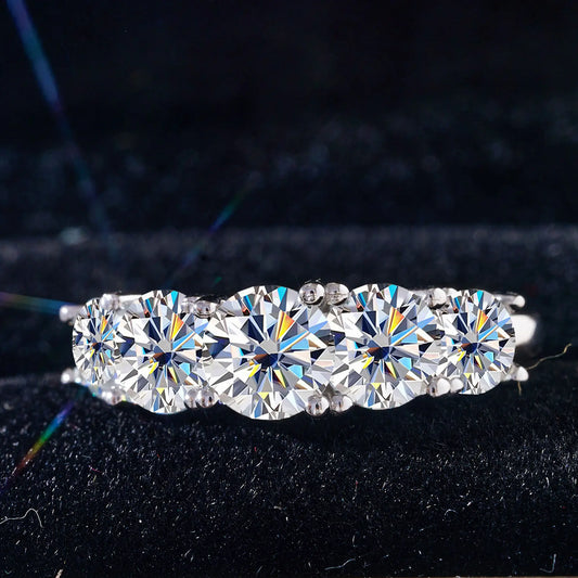 Moissanite Rings For Women 5 Stones Sparkling Diamond Jewelry