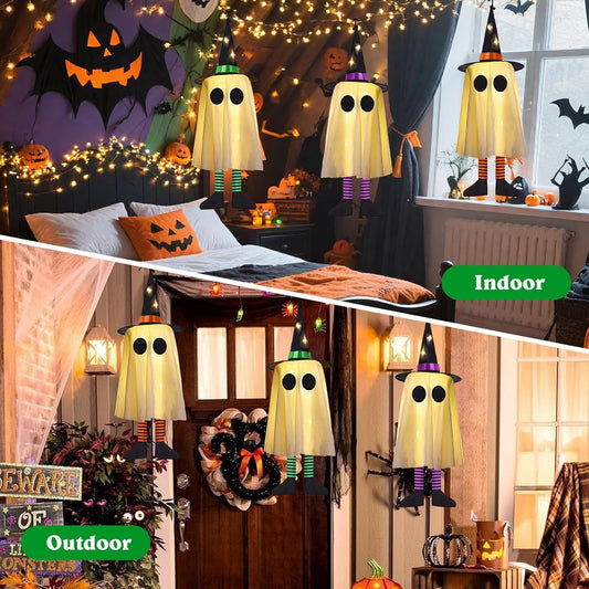 Set of 3 Glowing Ghost Witch Hat Lights for Outdoor Halloween Decor