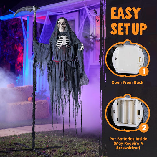 6 Ft Animated Grim Reaper with Sound for Halloween Yard Decor