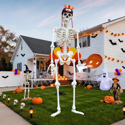 12ft Skeleton Thanksgiving Outfit – Funny Giant Skeleton Costume Set with Turkey Hat, Tail & Inflatable Leg (Skeleton Not Included)