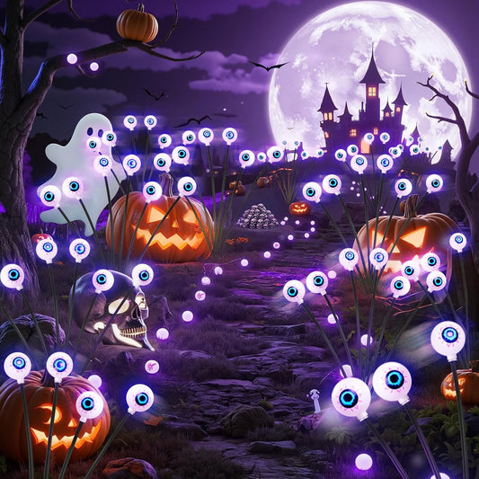 Solar Eyeball Pathway Lights 4-Pack, Waterproof Halloween Decor for Yard