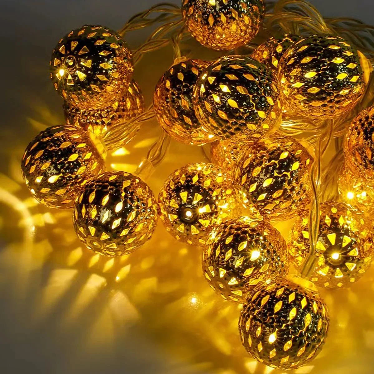 These Luminous Moroccan Metal Ball Lights bring an exotic touch to any setting. Their unique, intricate designs are perfect for gardens, patios, or any outdoor spaces. Effortlessly hang them with the self-contained installation. Made from durable materials, they withstand the elements while providing stunning illumination. Enjoy captivating events without the hassle. Illuminate your space beautifully while saving on energy with these efficient LED lights.