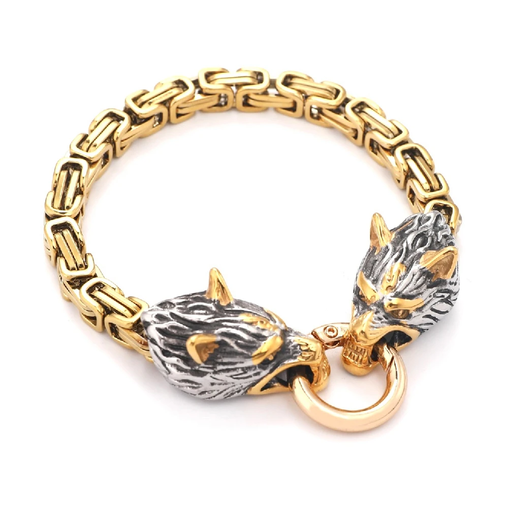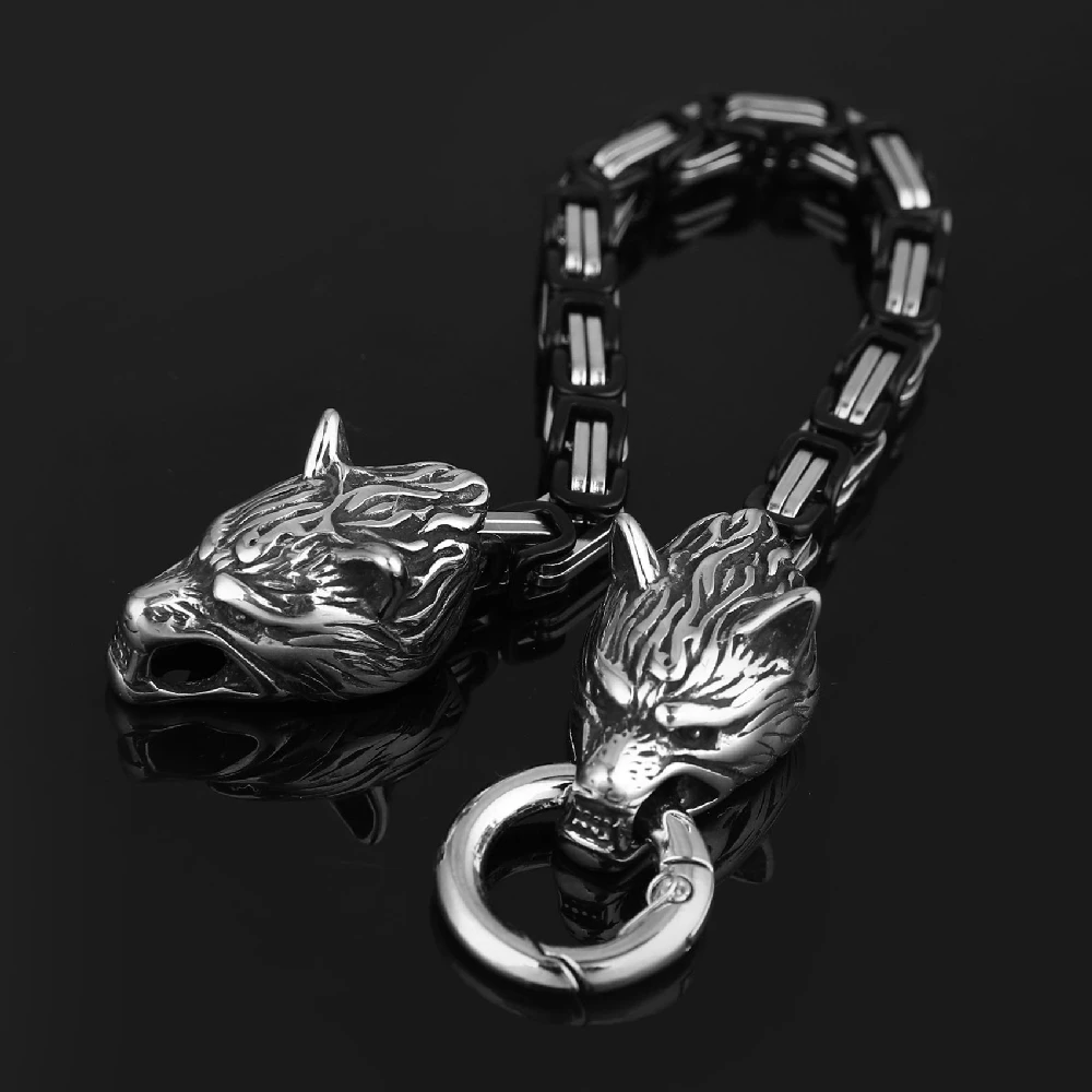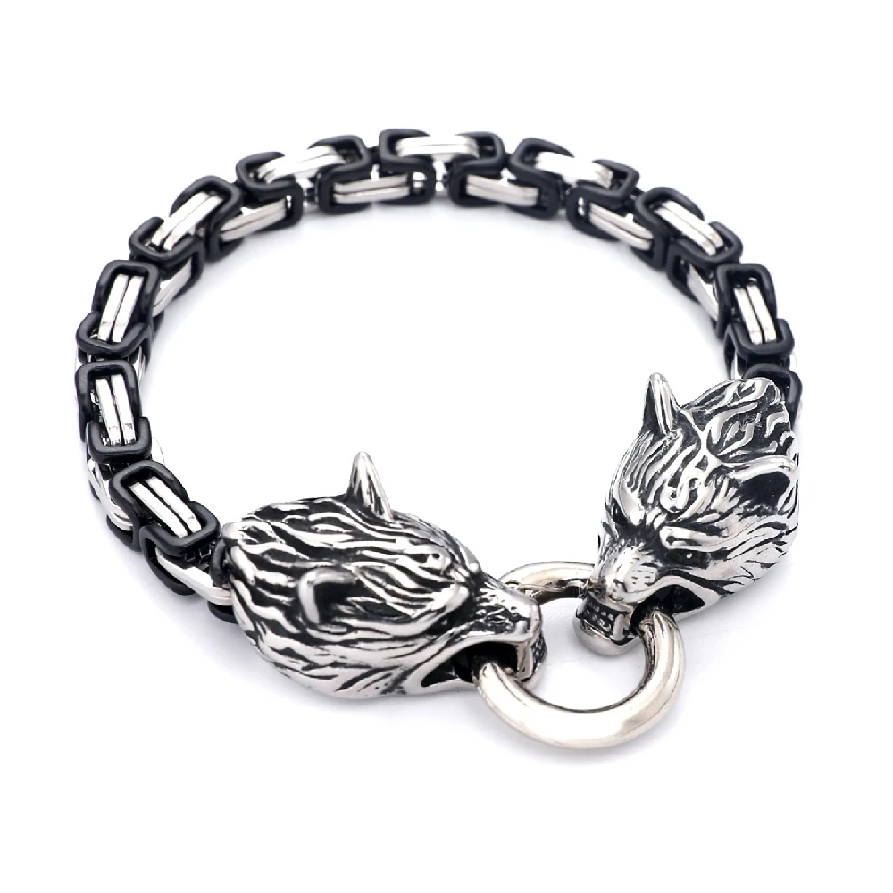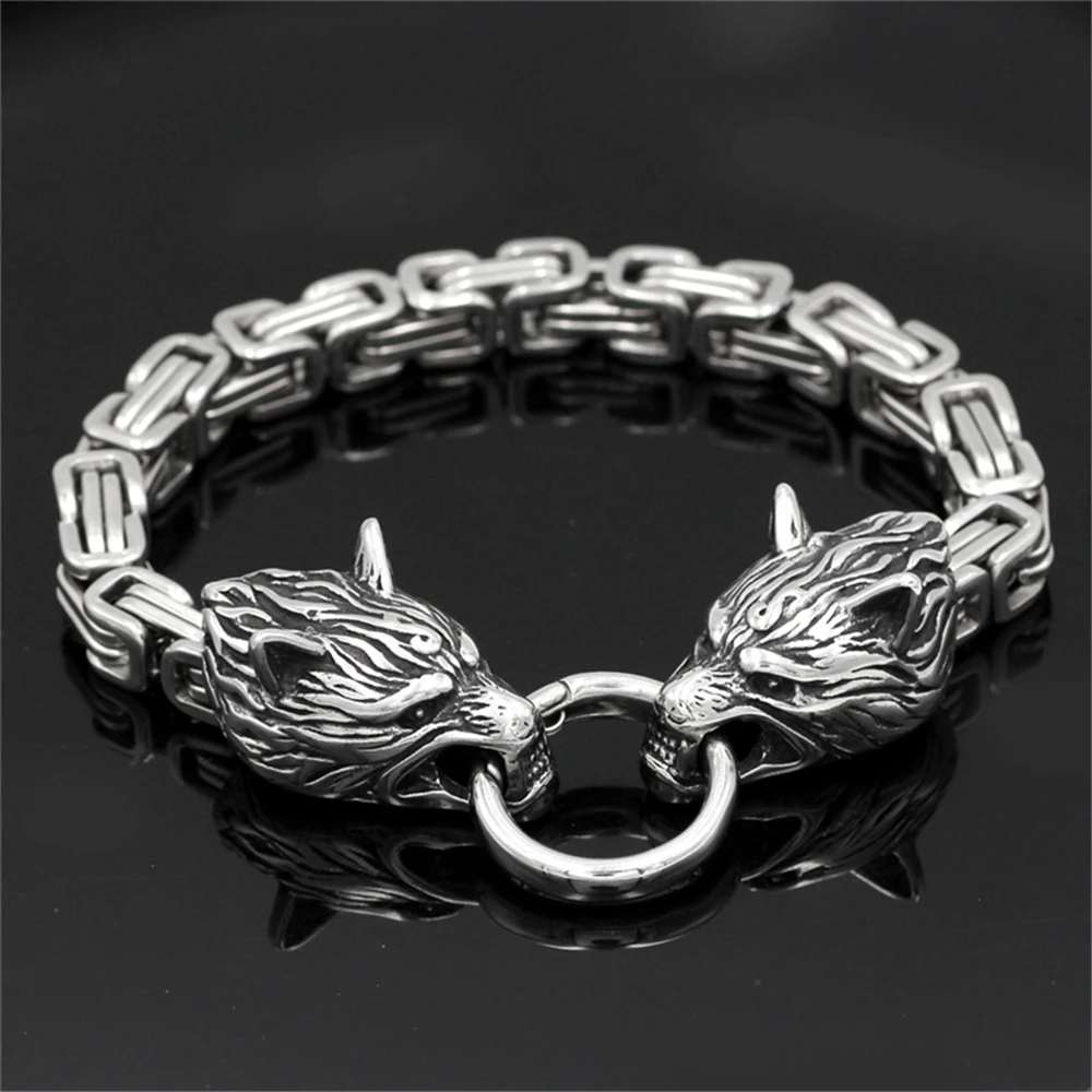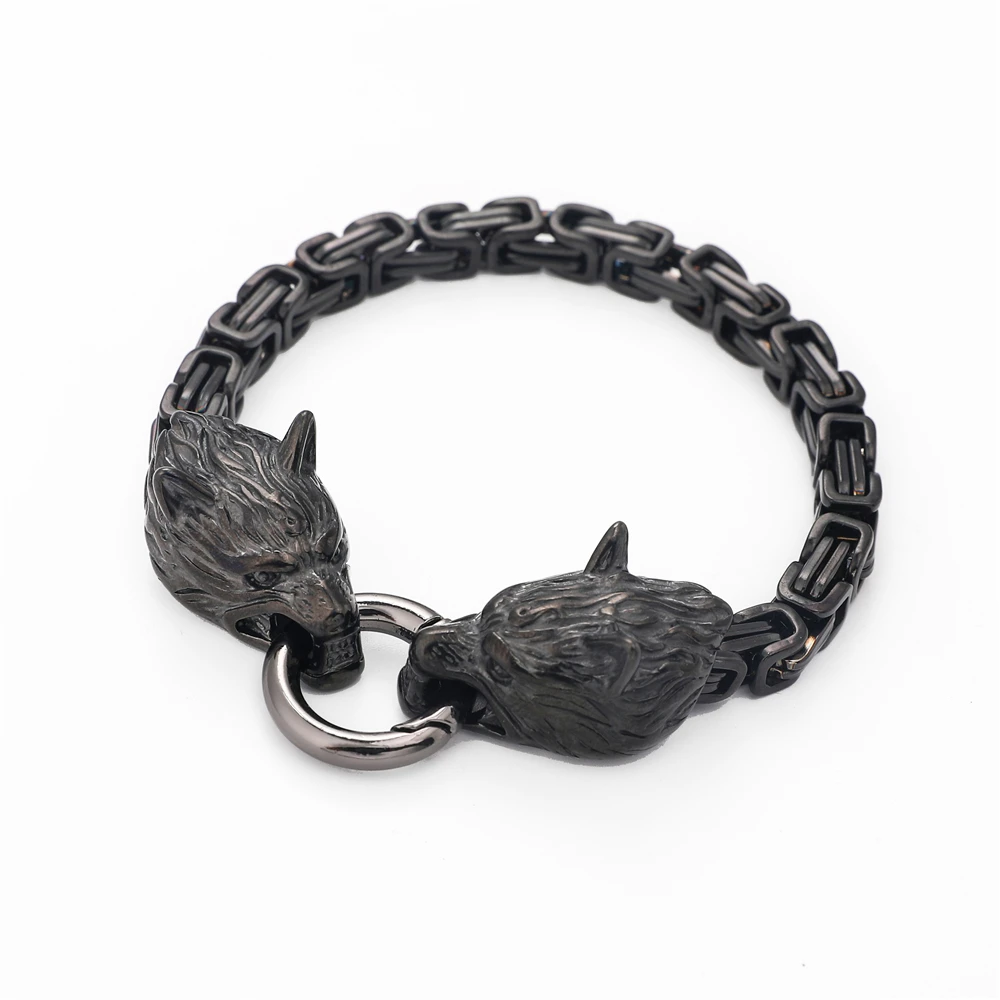 Material: Norse Viking Celtic Wolf Head Bracelets King Chain Wristband