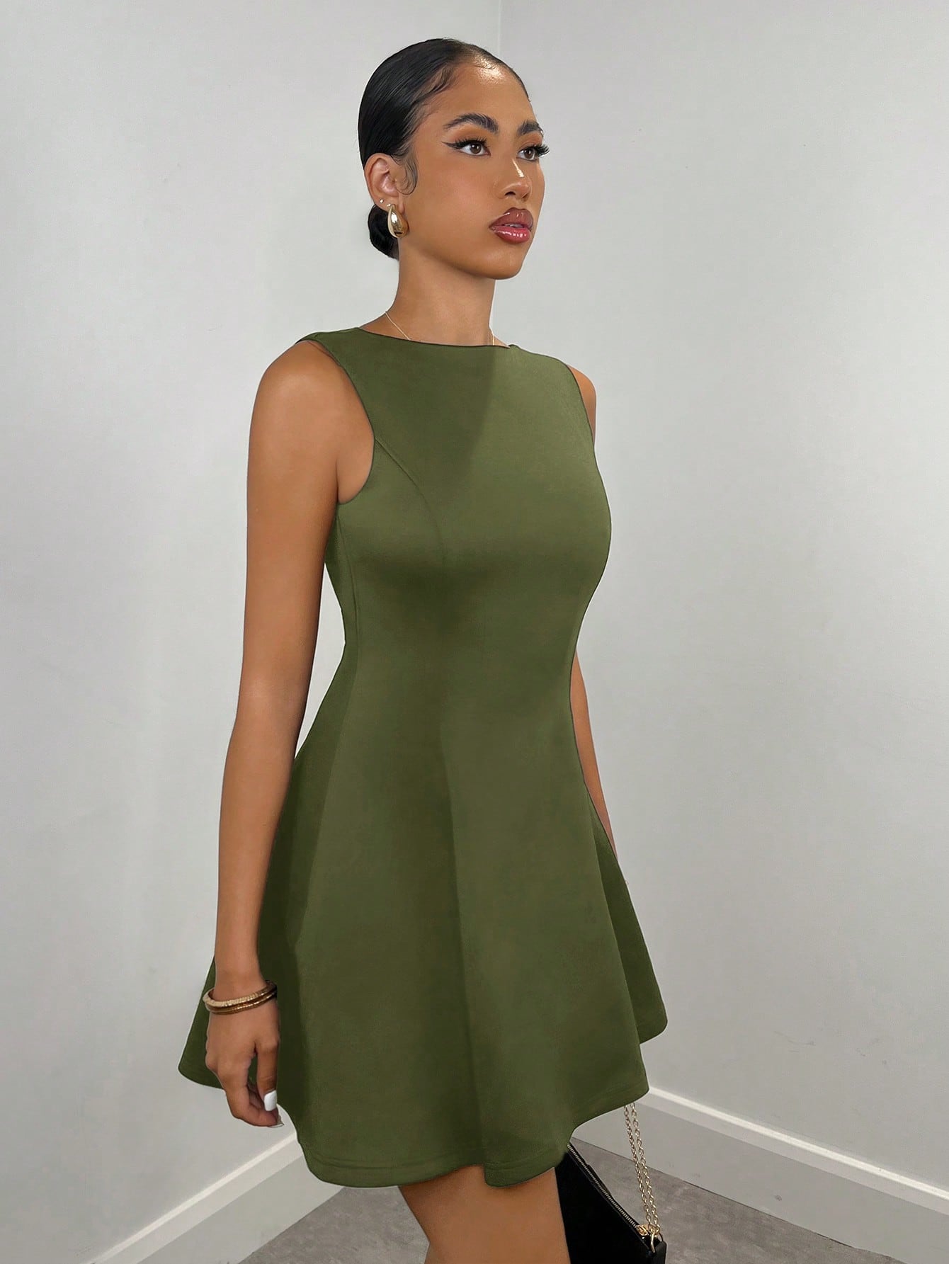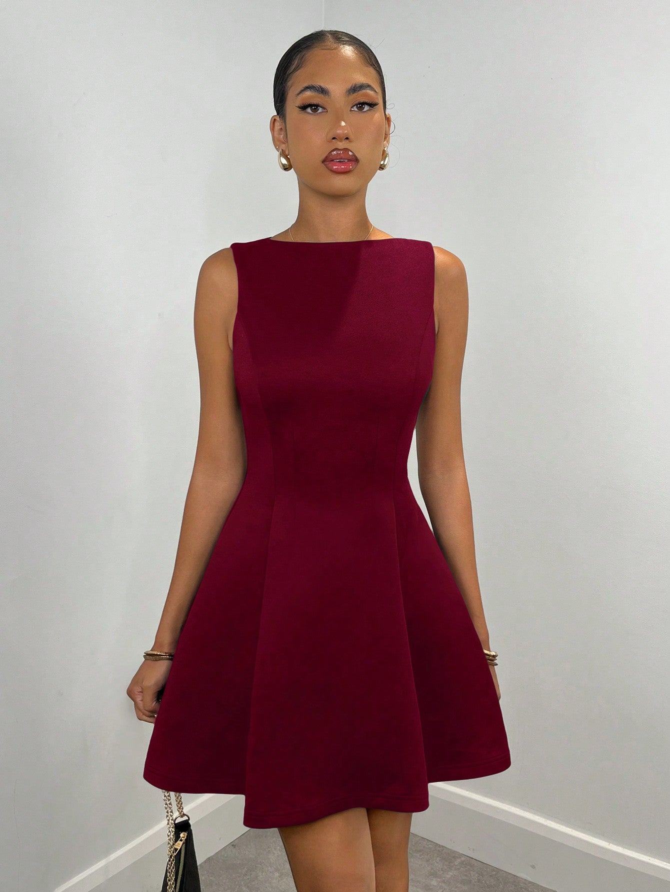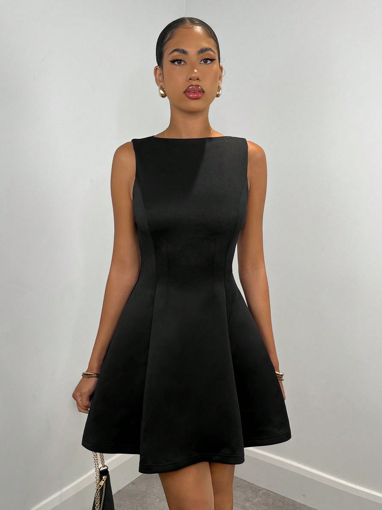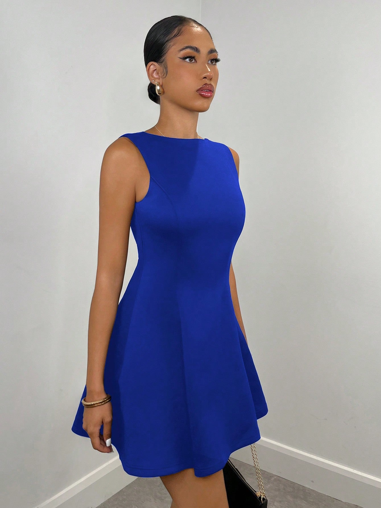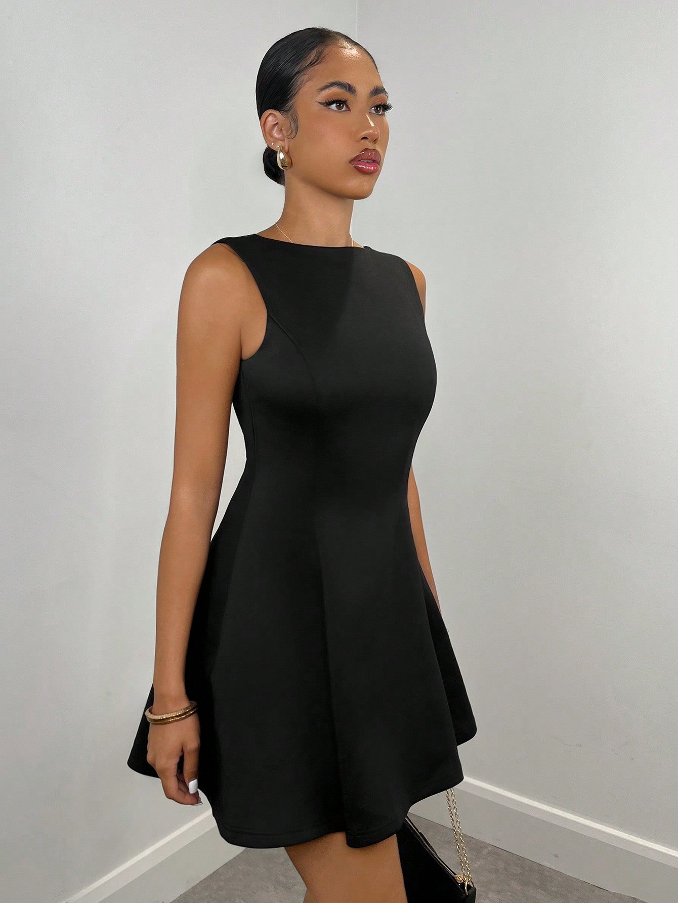 SHEIN BAE Women's Solid Color Date Night A-Line Sleeveless Waist Fitted Elegant Dress, Autumn,Summer Dresses For Women,Tea Party Dress,White Graduation Dress