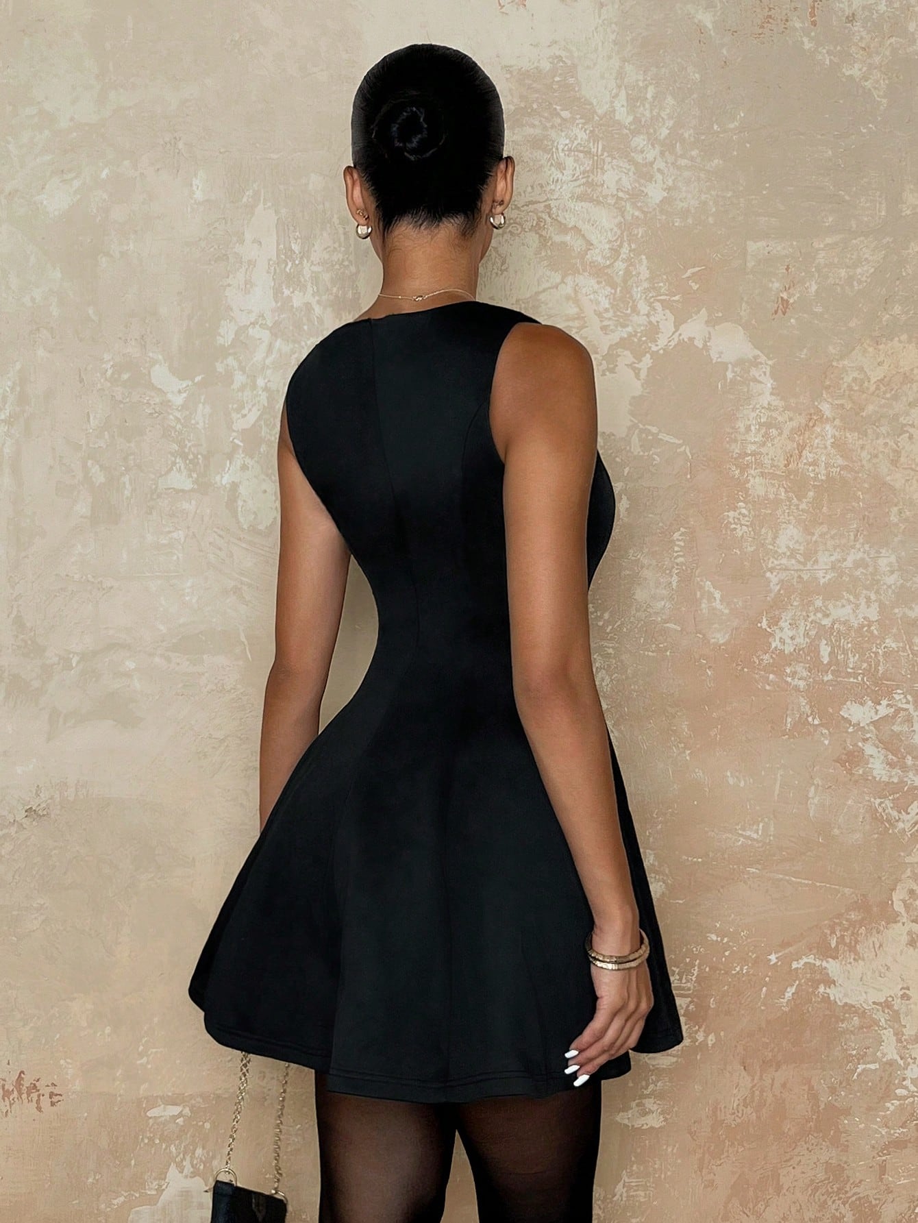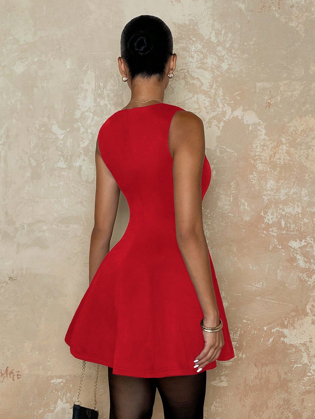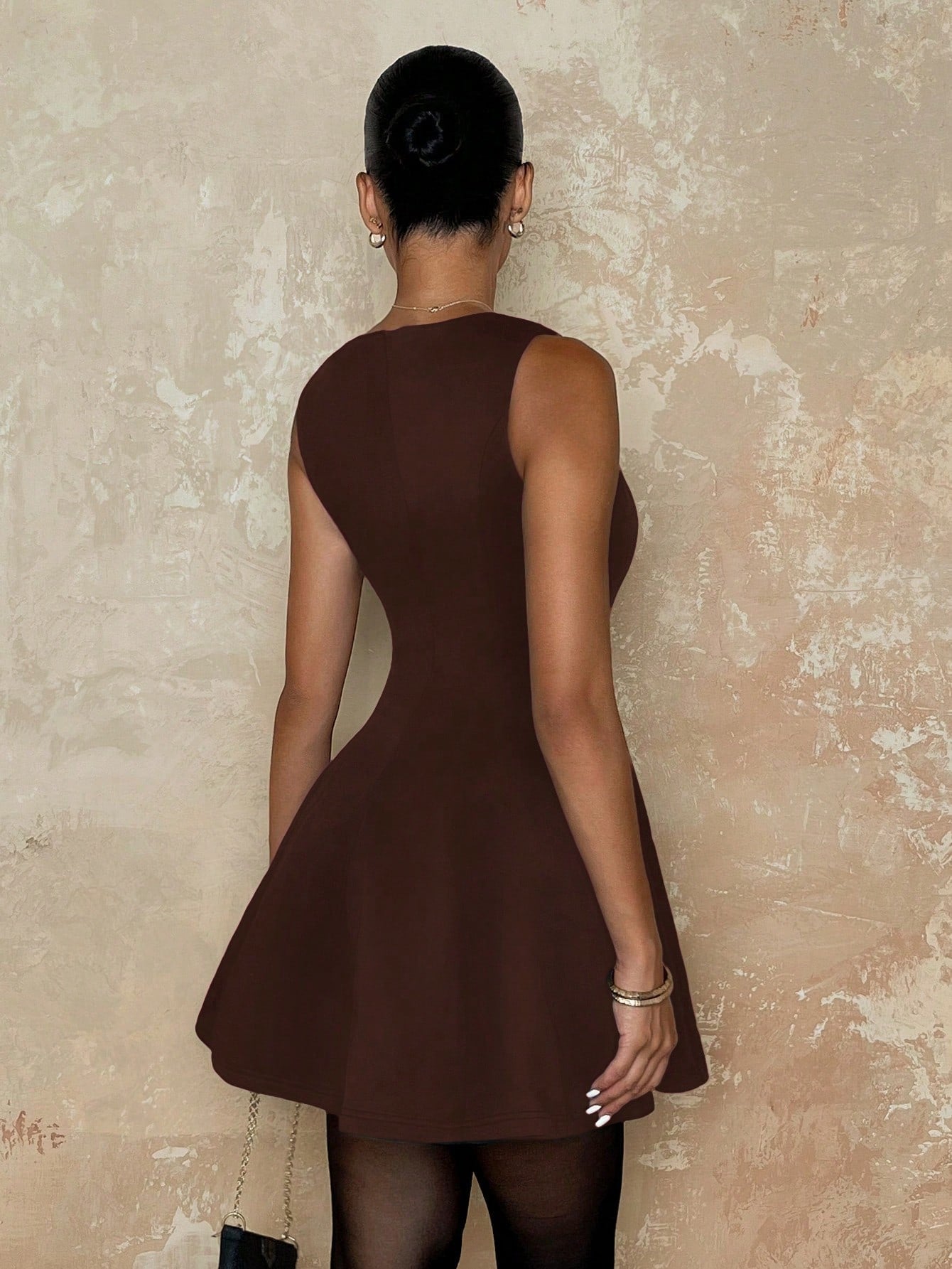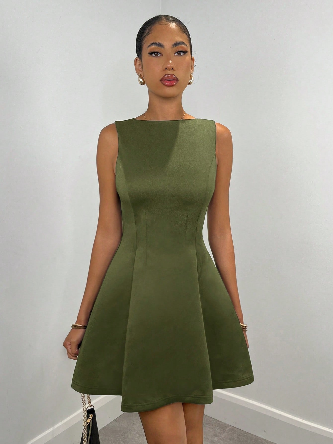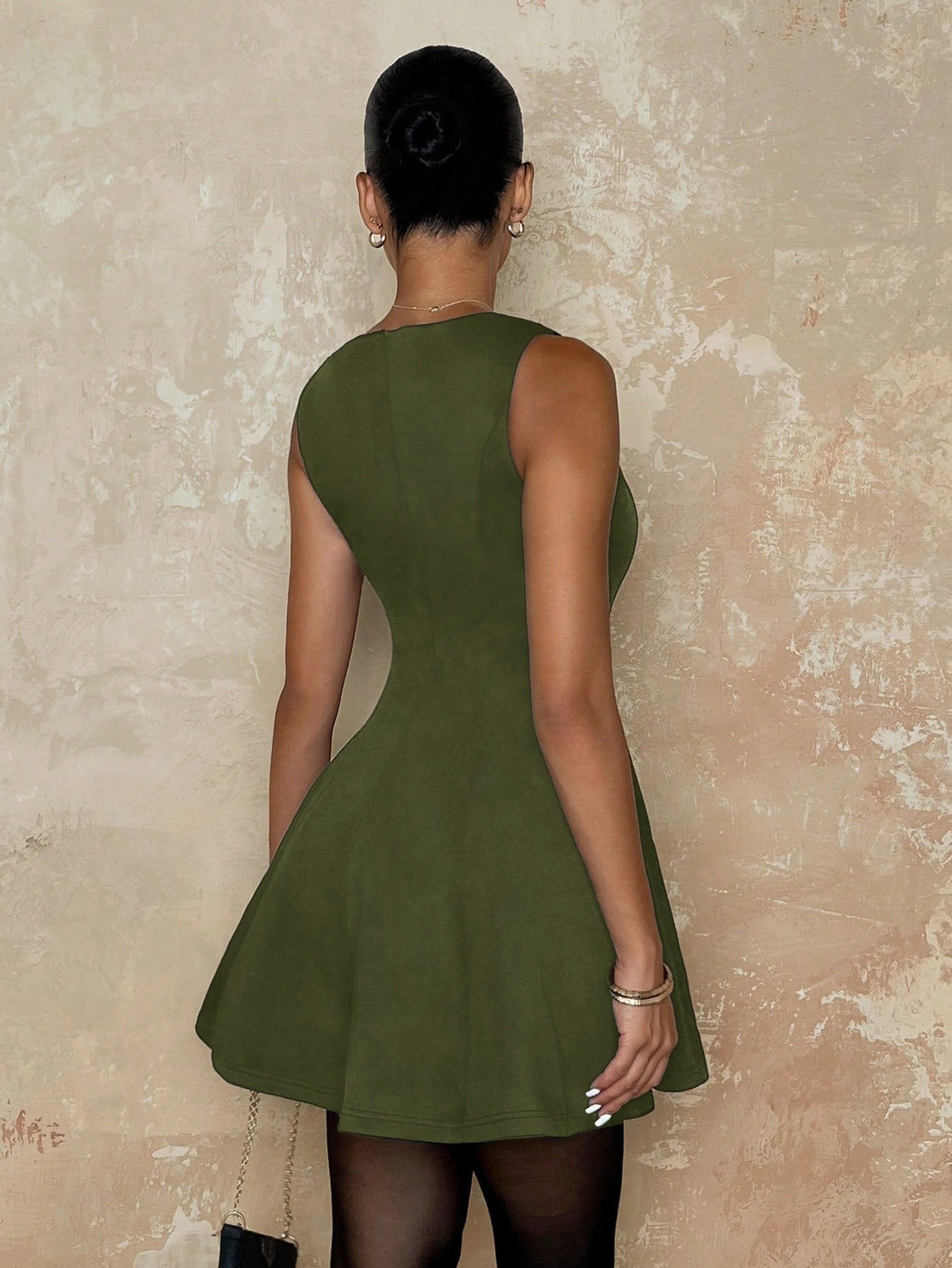 SHEIN BAE Women's Solid Color Date Night A-Line Sleeveless Waist Fitted Elegant Dress, Autumn,Summer Dresses For Women,Tea Party Dress,White Graduation Dress