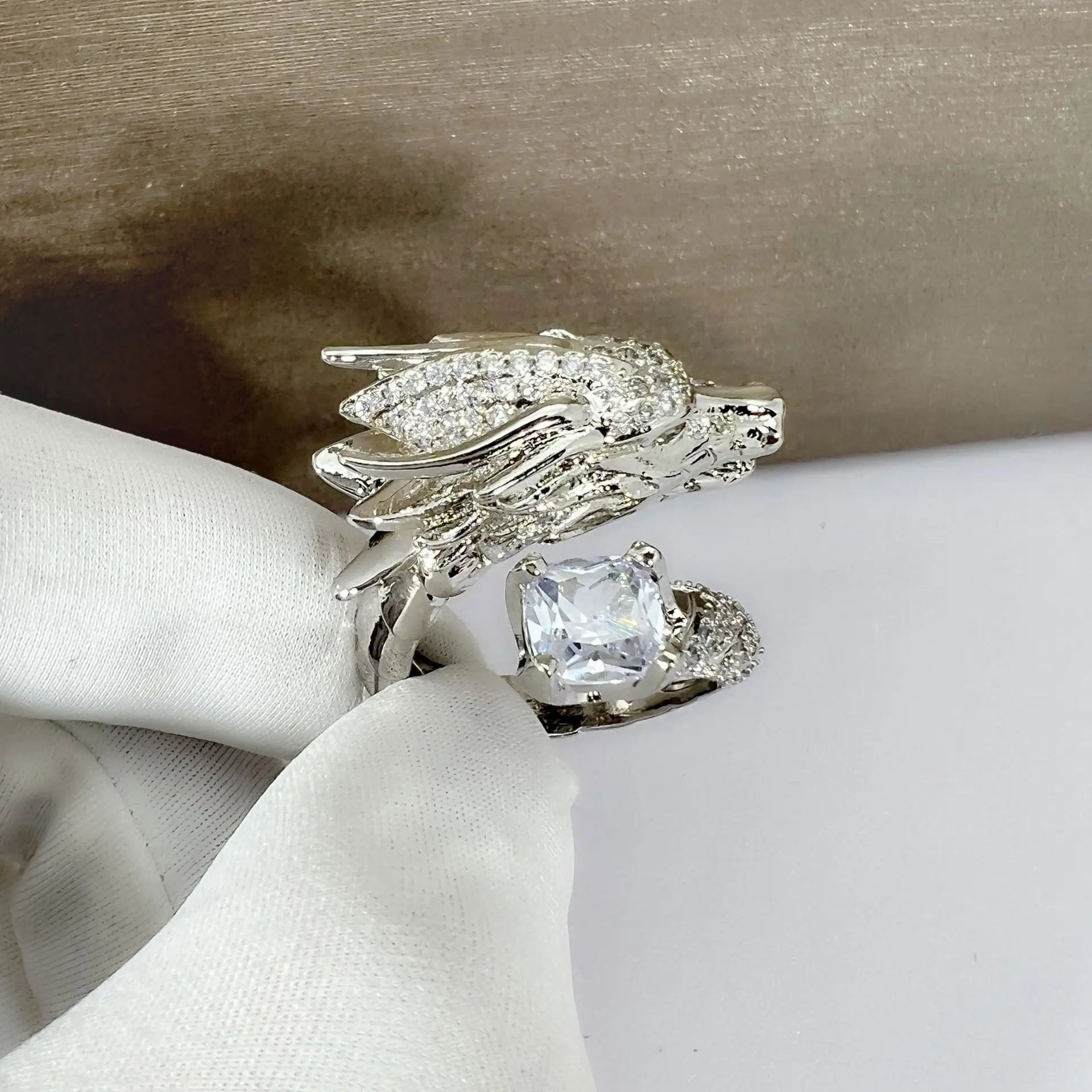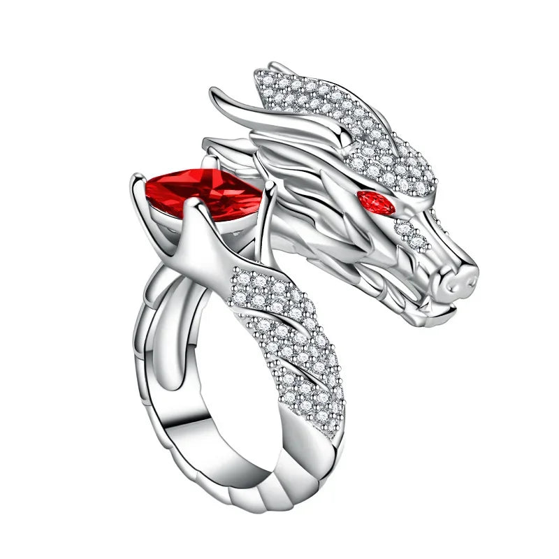 Silver Dragon Rings For Men Women Luxury Red Blue Gemstone Ring
