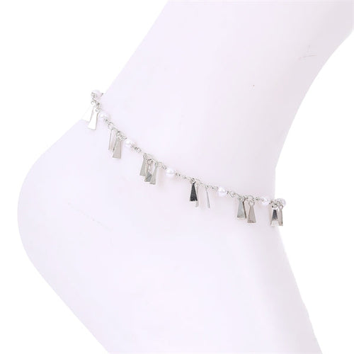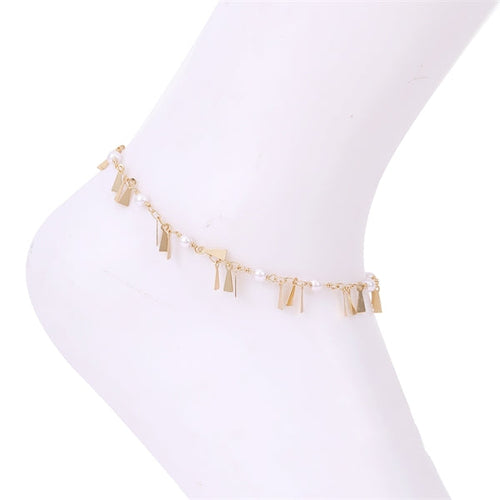 TRIANGLE PENDANT TASSEL PEARL ANKLET