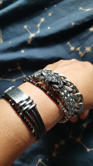 Crafted from high-quality stainless steel, this bracelet is designed to be durable and resistant to fading, ensuring long-lasting wear.