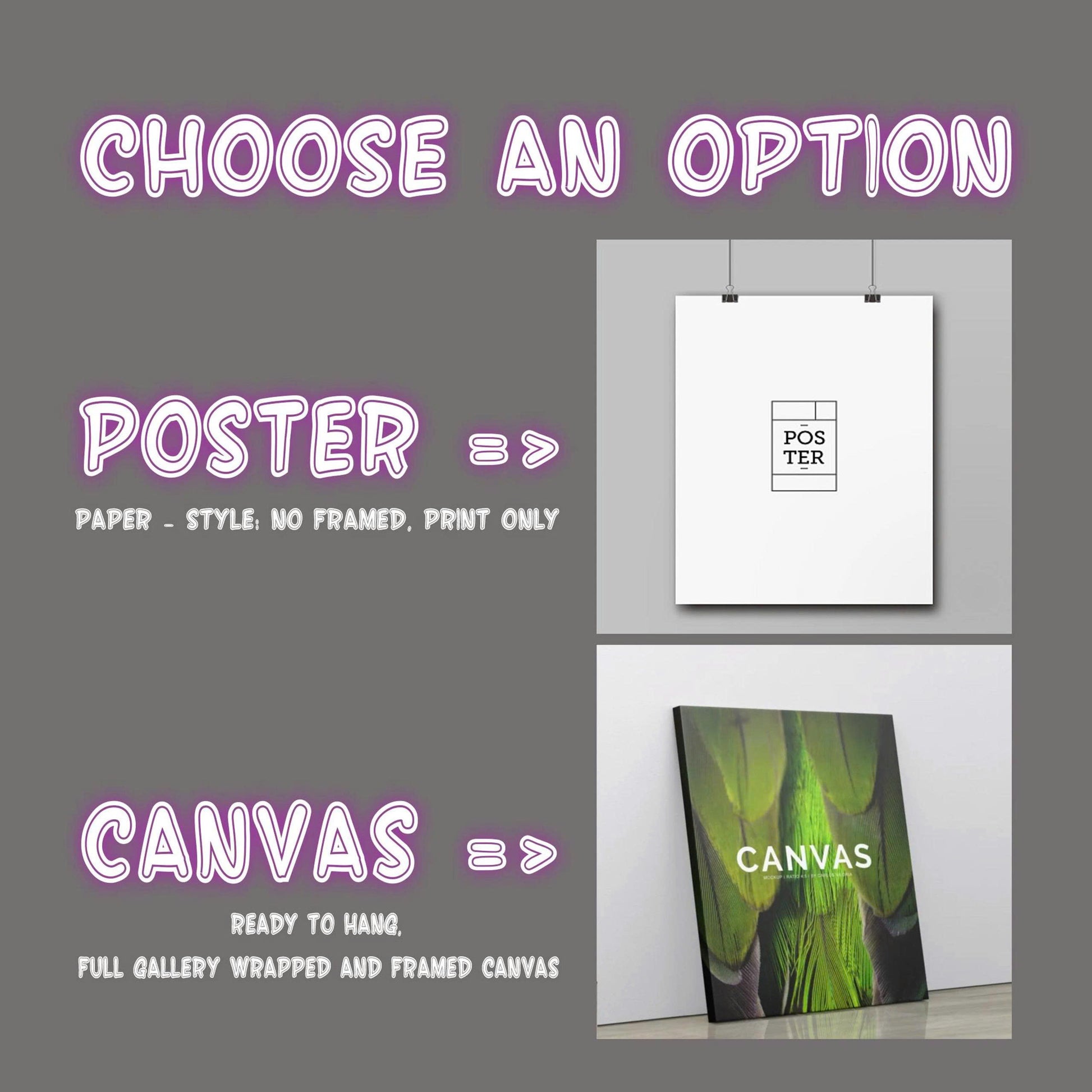 * The Portrait Canvas Prints - With Hook is a beautiful and ready-to-hang decor piece that brings warmth, depth, and artistic charm to any room. Material: - Premium poly-cotton canvas, kiln-dried pine wood stretcher bars, and eco-friendly. inks Features: - Printed in high-definition on stretched canvas - Comes ready to hang with hooks attached - Adds a cozy, framed touch to homes, offices, or makes a thoughtful gift for birthdays and weddings - Actual color may be slightly different from the image due to different monitor and light effects. Technique: - Created using advanced HP Latex printers and HP Latex inks, with each canvas hand-stretched for a professional finish. * The Poster - Portrait is a premium-quality print that captures your favorite images with rich detail and vibrant color, perfect for enhancing any vertical space. Material: - High-grade luster photo paper for a soft sheen and professional finish. Features: - 1-side printed for a clean and elegant presentation - Ideal for framing, wall decor, or gifting - Resistant to smudges and fingerprints for lasting visual appeal - Actual color may be slightly different from the image due to different monitor and light effects. Technique: - UV printing for sharp, high-resolution, and fade-resistant results. Location: - Manufactured in United States.